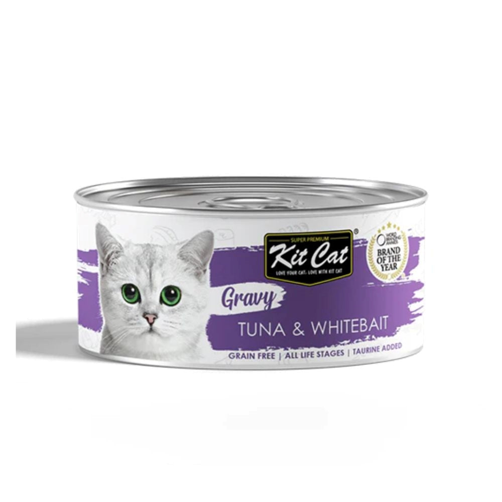 كت كات طعام رطب للقطط بالتونة وسمك المحيط الابيض بالمرق 80غ