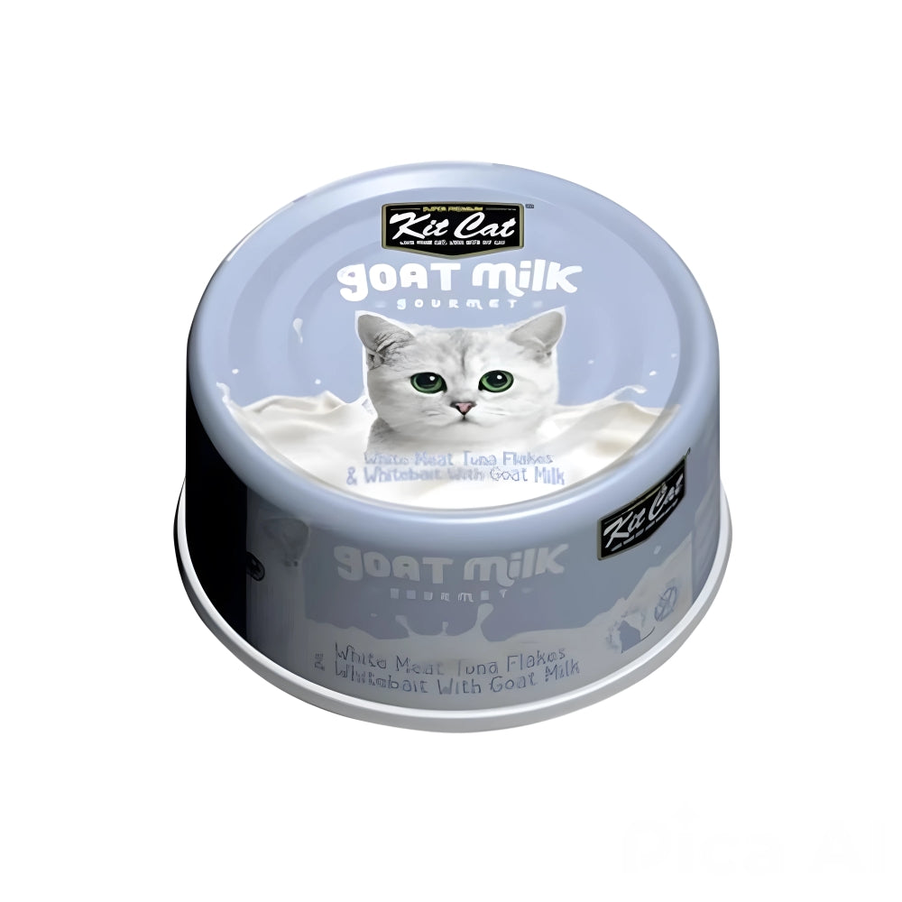 كت كات طعام رطب للقطط بشرائح التونة مع سمك المحيط الابيض و حليب الماعز 70 جرام