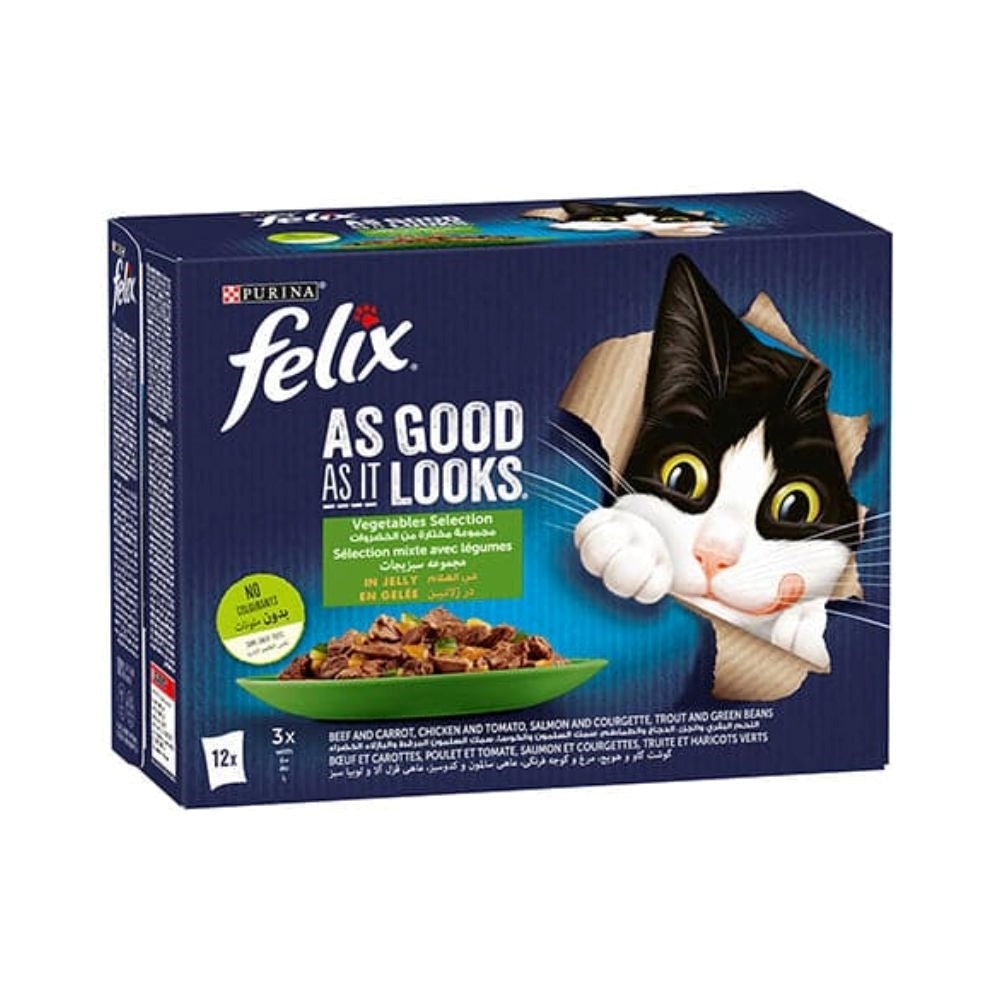 بيورينا فيليكس طعام رطب للقطط تشكيلة بنكهات الخضار واللحوم والدجاج وسمك السالمون 12*85 جرام