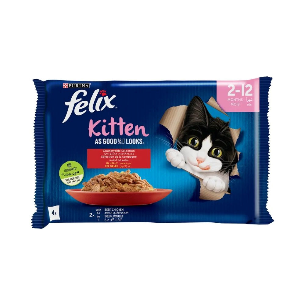 بيورينا فيليكس كونتري سايد طعام رطب للقطط الصغيرة بنكهة اللحم البقري والدجاج 85*4 جرام