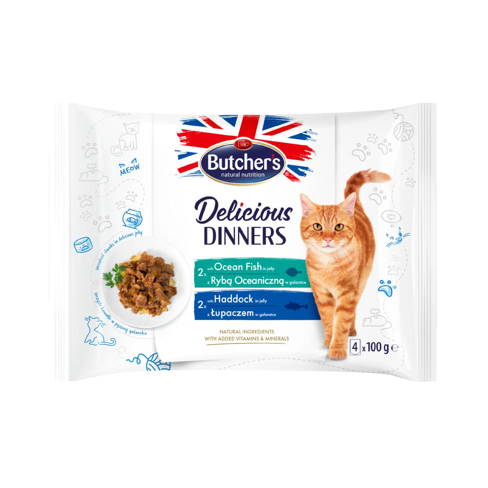 بوتشرز طعام رطب للقطط البالغة بنكهة سمك المحيط مع سمك الحدوق بالجيلي 400غ