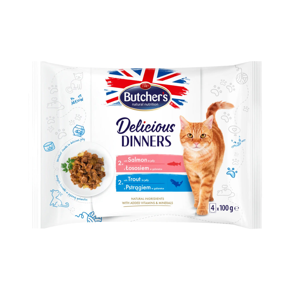 بوتشرز طعام رطب للقطط البالغة بنكهة السالمون مع السالمون المرقط بالجيلي 400غ