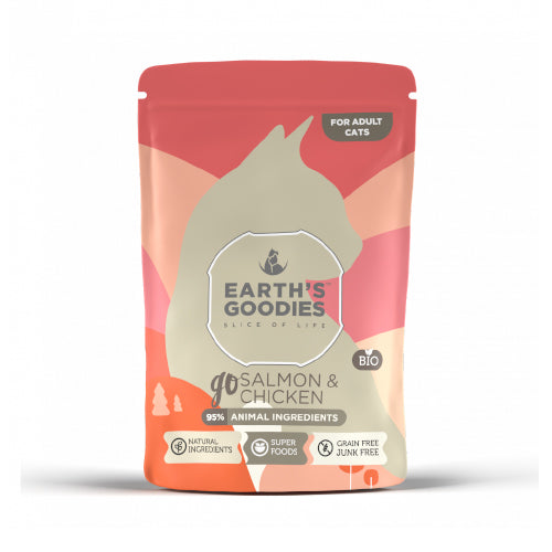ايرث قوديز طعام رطب للقطط البالغة بنكهة الدجاج والسالمون في المرق 85غ