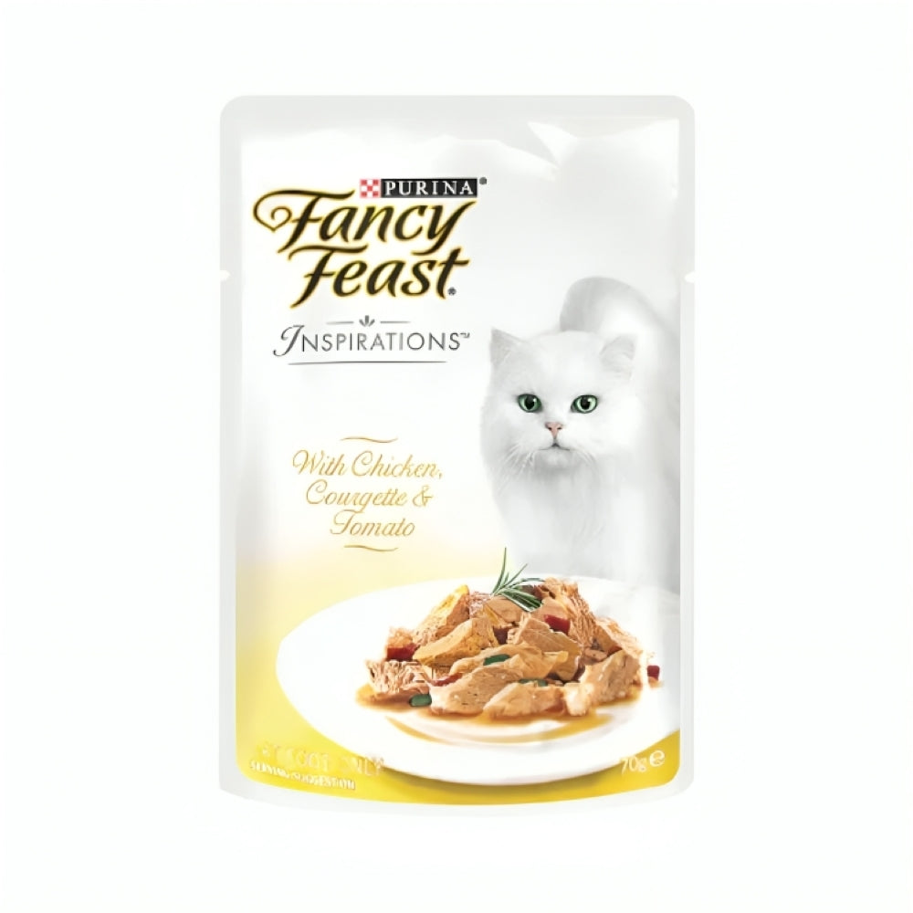 بيورينا فانسي فيست إنسبيريشنز طعام رطب للقطط بنكهة الدجاج والكوسة والطماطم 70غ