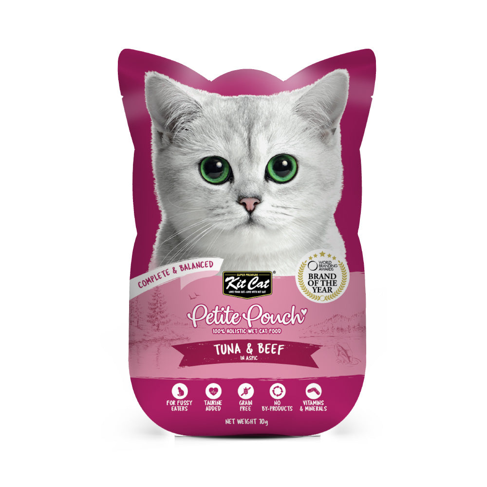 كت كات بتيت باوتش طعام رطب للقطط بنكهة التونة واللحم البقري في الجيلاتين 70غ