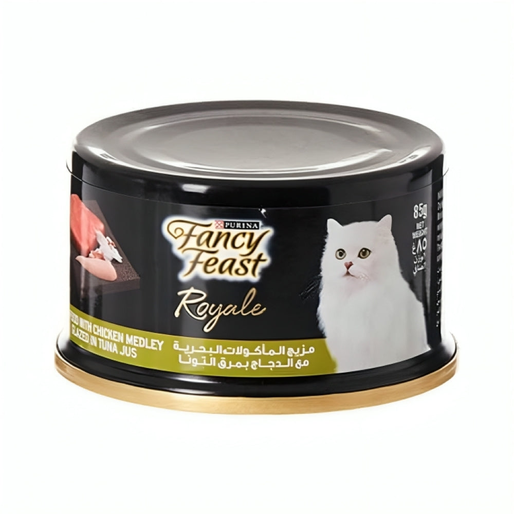 بورينا فانسي فيست رويال طعام رطب للقطط بنكهة الماكولات البحرية والدجاج بمرق التونة 85غ